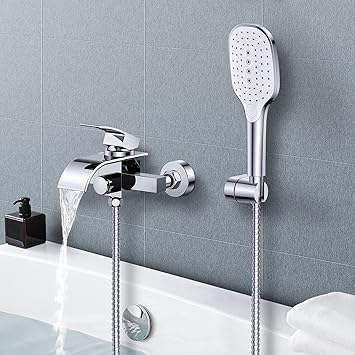 Bathtub Faucet : Black Wall Mount Waterfall Tub Faucet Elegant Bathtub Mixer With Hand Shower Chrome Black : A tub faucets is not just a spout that fills up your tub with water.. Bathtub faucets range in price depending on the type and material. Tuscom faucet sprayer,360 flexible adjustable kitchen bathtub sink faucet sprayer jet shower heads. Faucet.com offers a wide range of tub and shower fixtures that are sure fit your bathroom, its décor, and your budget. Today, there are a variety of stylish tub and shower faucets in a range of colors, with a variety of practical features. Faucets serve as the finishing touches of bathroom and kitchen spaces, allowing you to personalize your countertop, bathtub and shower.
